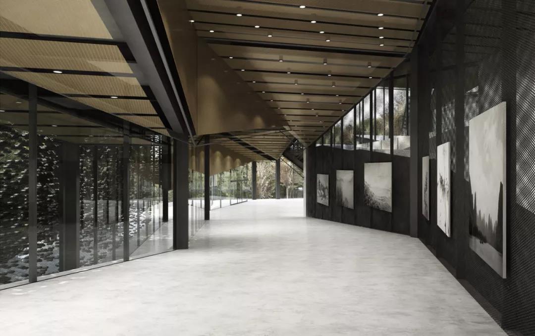 一个极薄的光晕,盘旋在一个由不同大小的画廊和社区设施组成的综合体上,这些设施被安置在一个不起眼的立方体展馆里,排列在一个像街道一样的网格上,形成一个混乱的迷宫,游客可以在其中漫游。