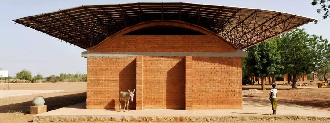 Kere在德国读书时设计了这所小学,它体现了他的低能耗、低成本的原则:一对简单的由泥砖制成的矩形体块,顶部是由波纹金属制成的“飞翔的屋顶”,提供额外的阴凉和协助空气流动。零科技生态的优雅典范。